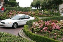 Lombardstreet - die crookedest street of the world. Eine Möglichkeit, die großen Höhenunterschiede zu überwinden.